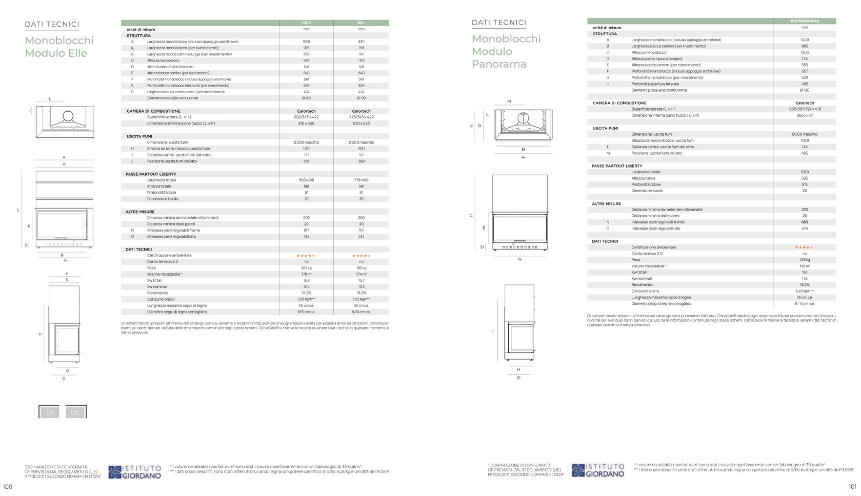 ** I dati sopra descritti sono stati ottenuti bruciando legna con potere calorifico di 3755 kcal/kg e umidità dell’9,08%.