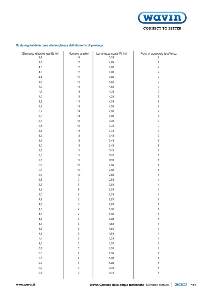 Scala regolabile in base alla lunghezza dell’elemento di prolunga