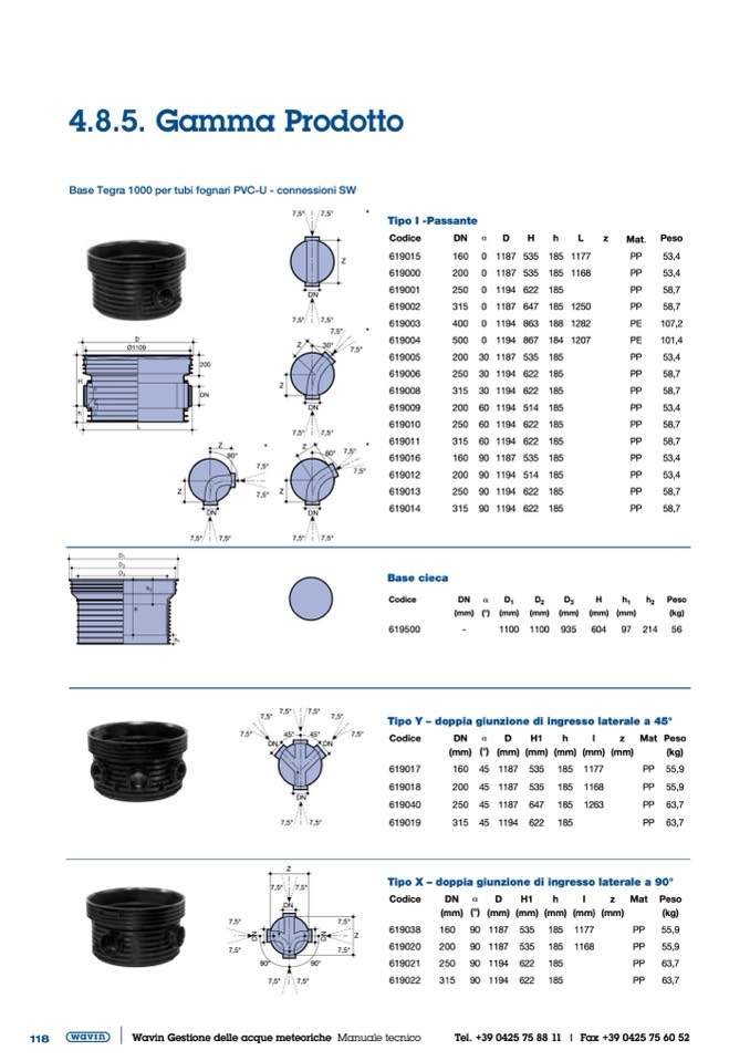 Base Tegra 1000 per tubi fognari PVC-U - connessioni SW