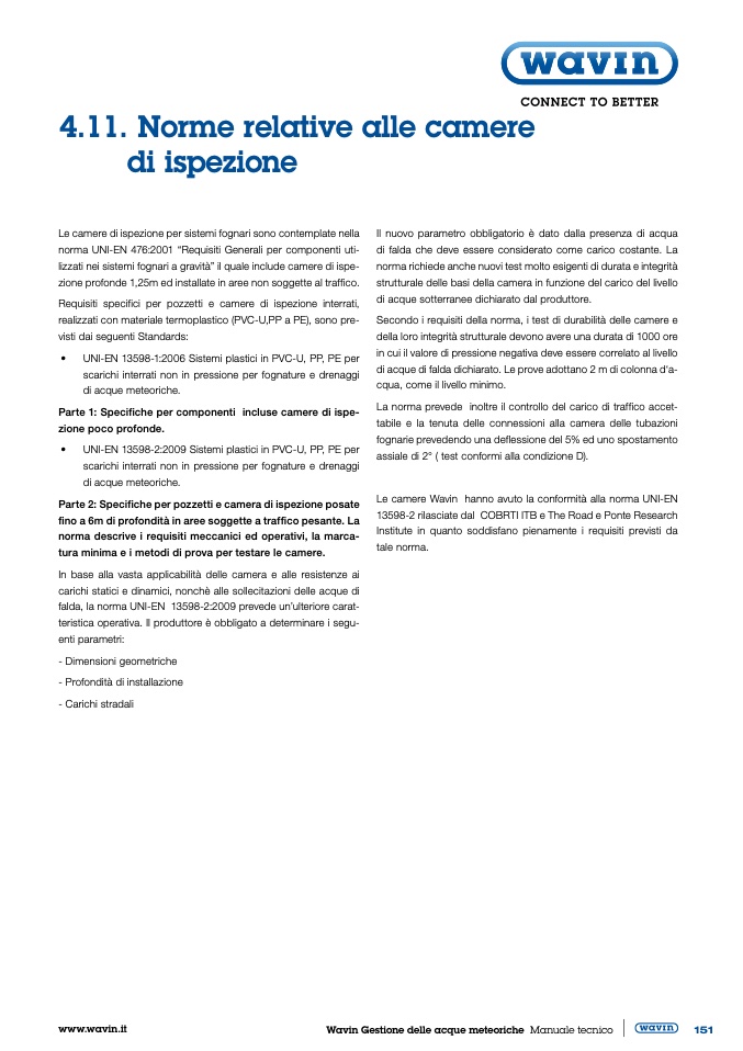 Le camere Wavin hanno avuto la conformità alla norma UNI-EN