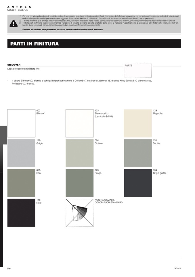 2) I diversi materiali e le diverse finiture accostate tra loro, anche se realizzate nella stessa colorazione (ad esempio, bianco), possono presentare inevitabili differenze di tonalità.