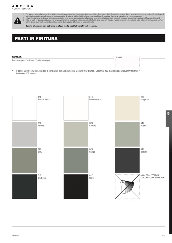 è necessario fare riferimento ai campioni fisici. I campioni delle finiture legno sono da considerarsi puramente indicativi: tutte le parti