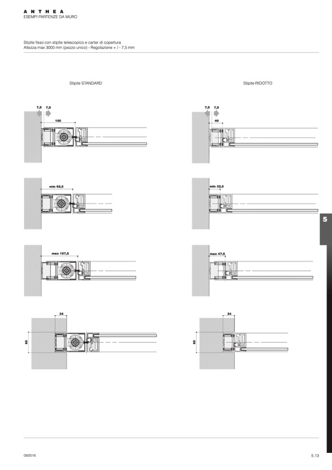 Altezza max 3000 mm (pezzo unico) - Regolazione + / - 7,5 mm