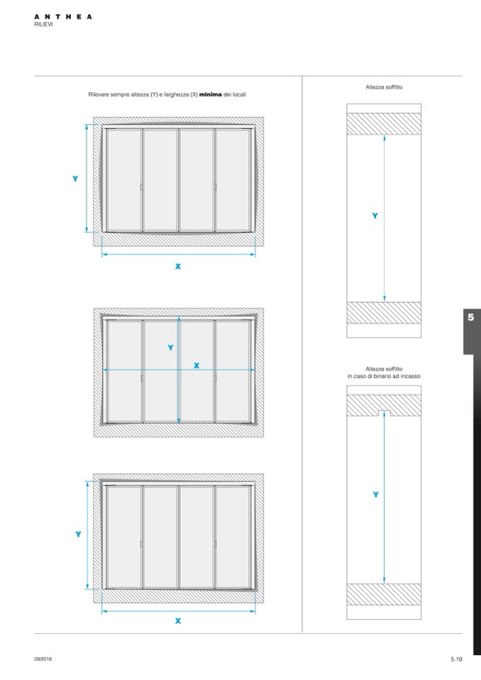 Rilevare sempre altezza (Y) e larghezza (X) minima dei locali