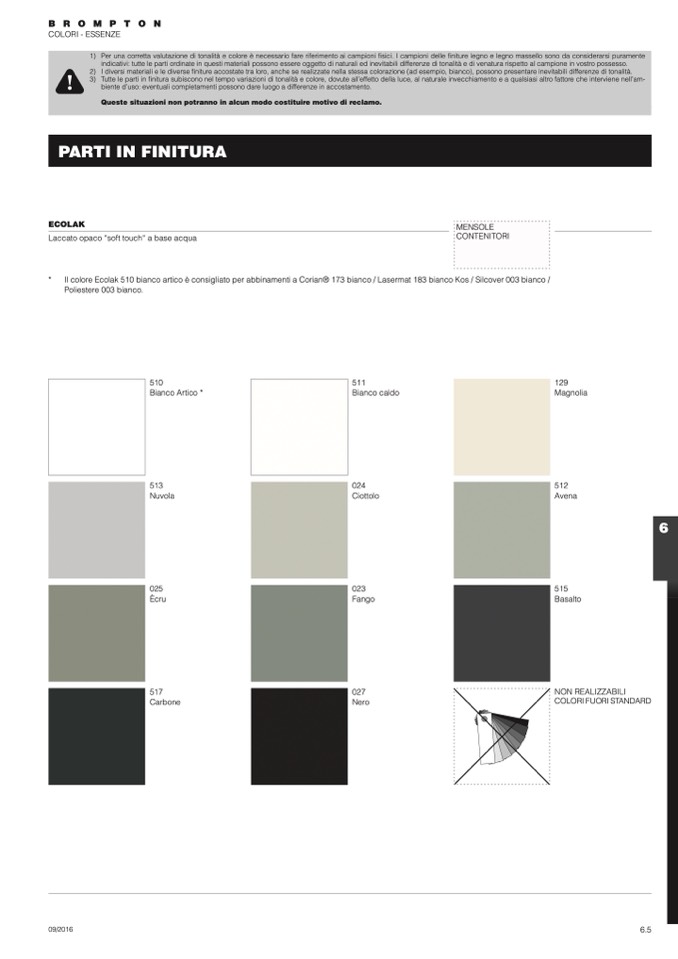 2) I diversi materiali e le diverse finiture accostate tra loro, anche se realizzate nella stessa colorazione (ad esempio, bianco), possono presentare inevitabili differenze di tonalità.