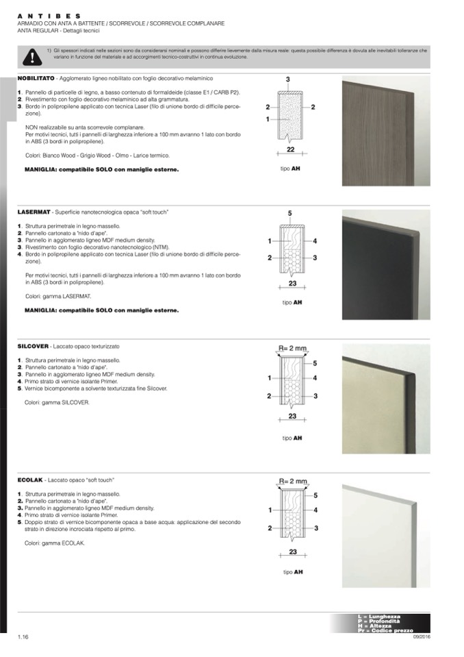 1) Gli spessori indicati nelle sezioni sono da considerarsi nominali e possono differire lievemente dalla misura reale: questa possibile differenza è dovuta alle inevitabili tolleranze che