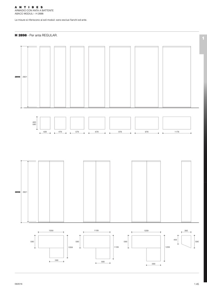 Le misure si riferiscono ai soli moduli: sono esclusi fianchi ed ante.