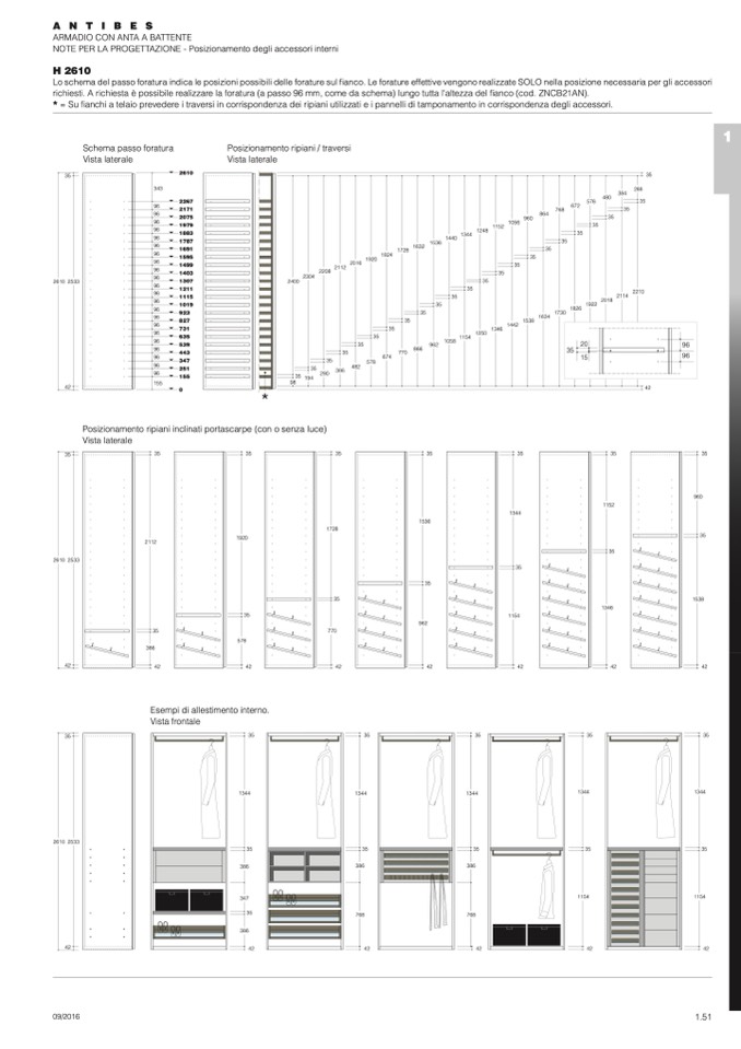 richiesti. A richiesta è possibile realizzare la foratura (a passo 96 mm, come da schema) lungo tutta l'altezza del fianco (cod. ZNCB21AN).