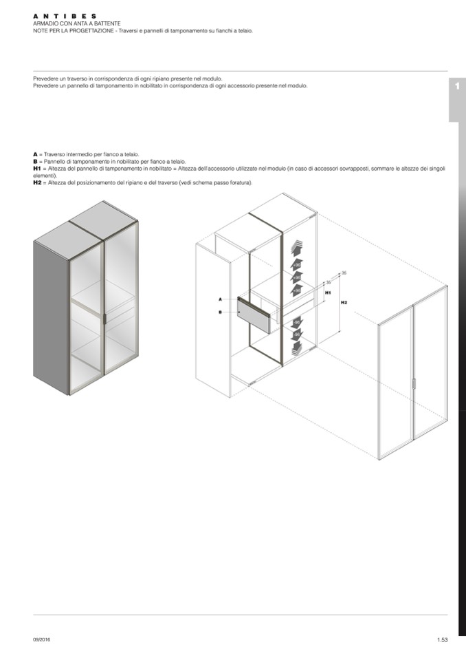 H2 = Altezza del posizionamento del ripiano e del traverso (vedi schema passo foratura).