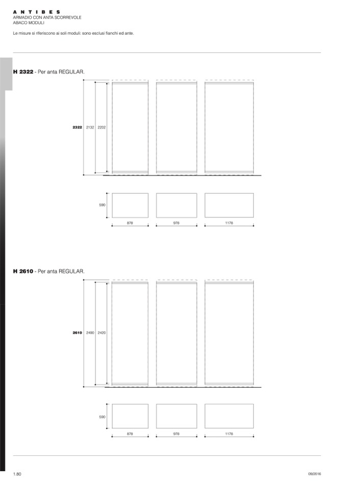 Le misure si riferiscono ai soli moduli: sono esclusi fianchi ed ante.