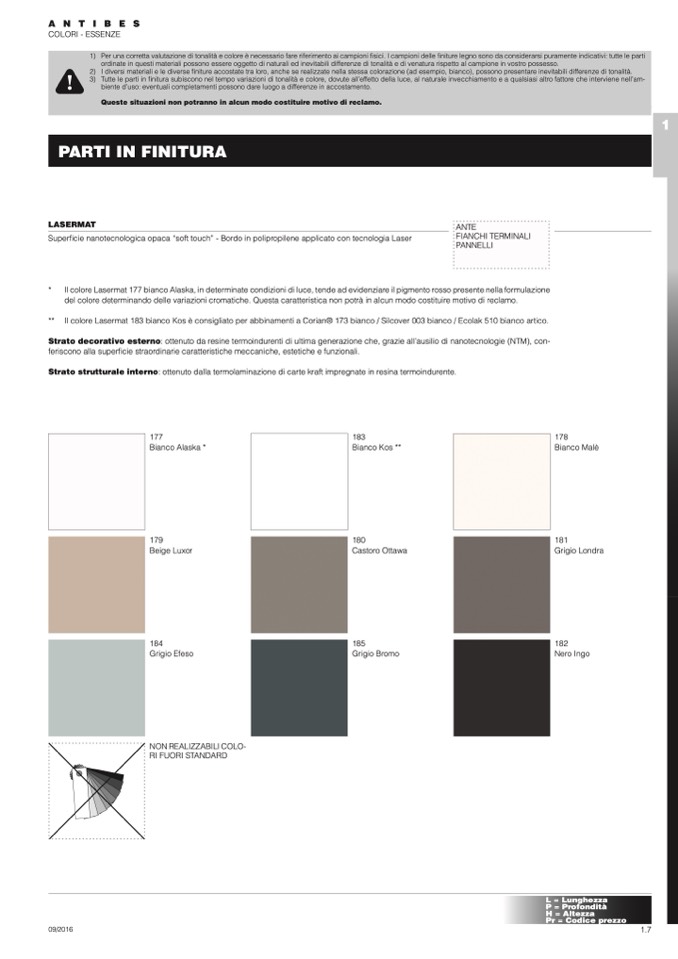 ** Il colore Lasermat 183 bianco Kos è consigliato per abbinamenti a Corian® 173 bianco / Silcover 003 bianco / Ecolak 510 bianco artico.