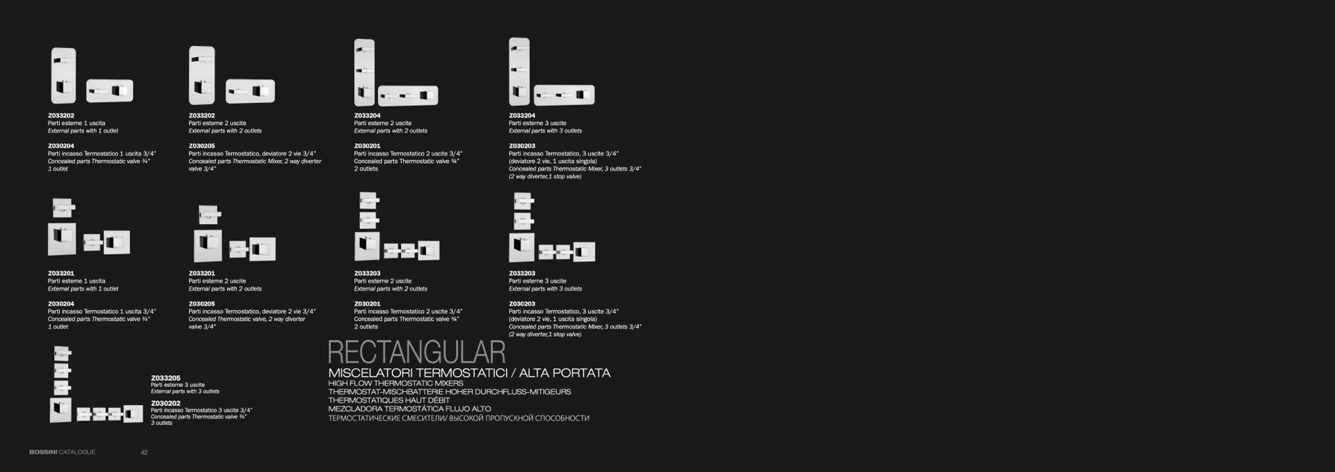 Parti incasso Termostatico, 3 uscite 3/4”