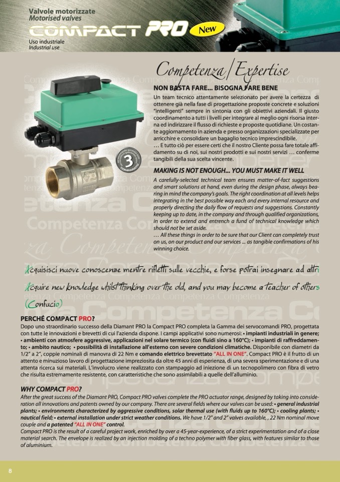 After the great success of the Diamant PRO, Compact PRO valves complete the PRO actuator range, designed by taking into conside-