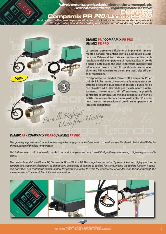 The growing importance of underfloor heating in heating systems led Comparato to develop a specific electrical Motorised Valve for