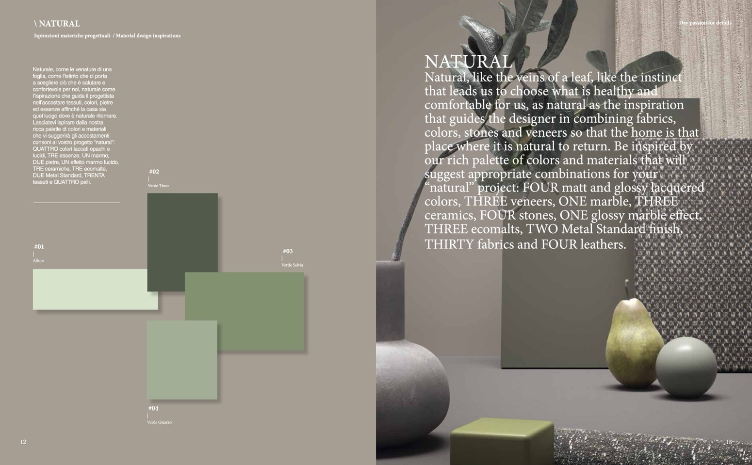 ricca palette di colori e materiali