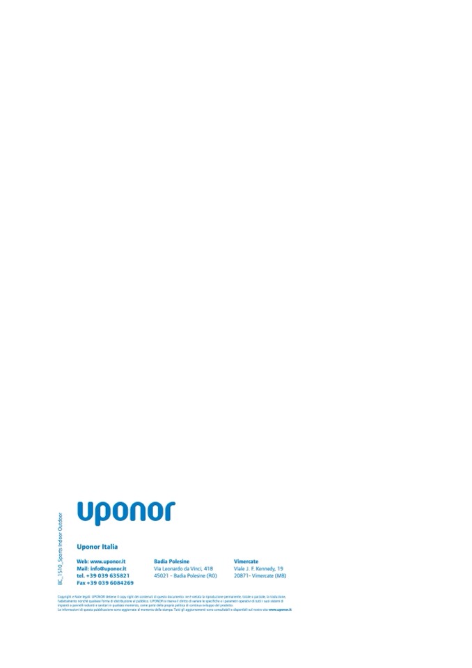 Copyright e Note legali: UPONOR detiene il copy right dei contenuti di questo documento: ne è vietata la riproduzione permanente, totale o parziale, la traduzione,