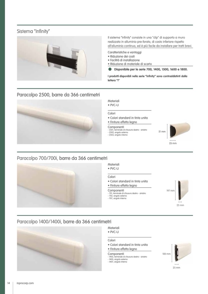 I prodotti disponibli nella serie “infinity” sono contraddistinti dalla