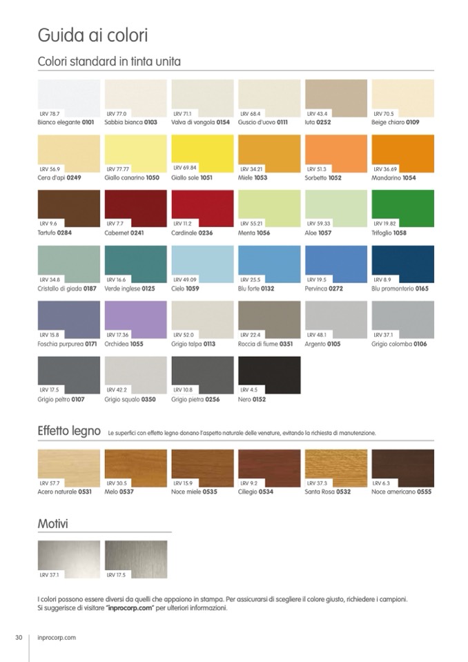 I colori possono essere diversi da quelli che appaiono in stampa. Per assicurarsi di scegliere il colore giusto, richiedere i campioni.