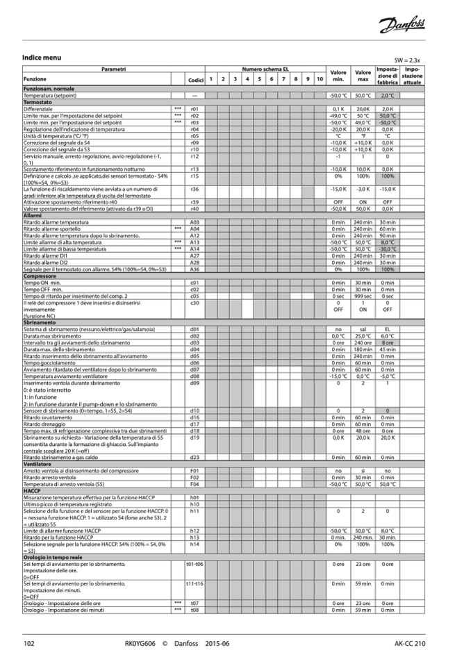Selezione della funzione e del sensore per la funzione HACCP. 0