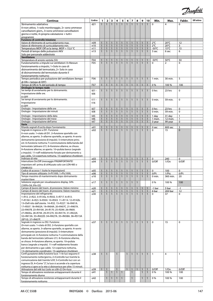 a impulsi). 11=raff reddamento forzato per sbrinamento a