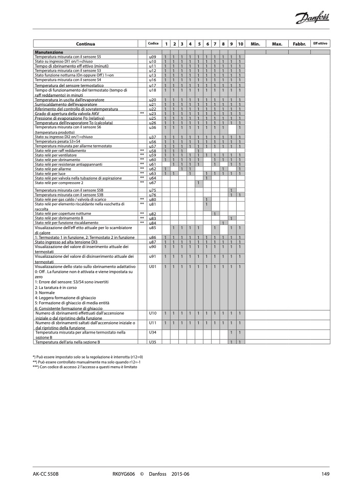 *) Può essere impostato solo se la regolazione è interrotta (r12=0)