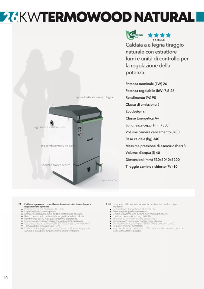 Caldaia a legna unica con ventilatore di scarico e unit
