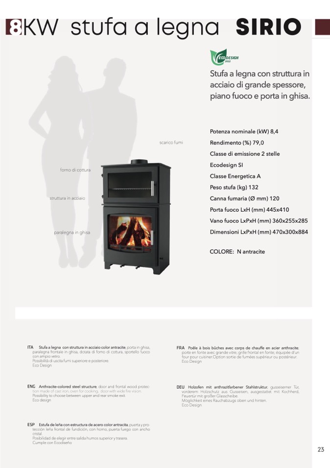 à di uscita fumi superiore e posteriore.