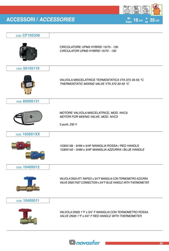 VALVOLA DN20 1’’F x 3/4’’ F MANIGLIA CON TERMOMETRO ROSSA