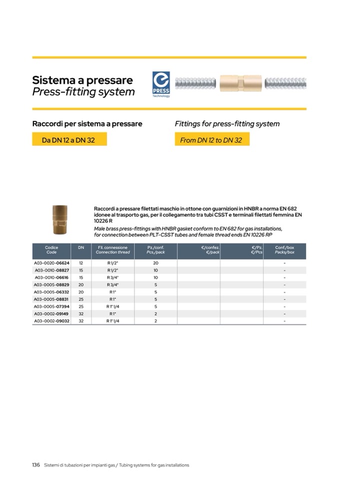 Sistemi di tubazioni per impianti gas / Tubing systems for gas installations