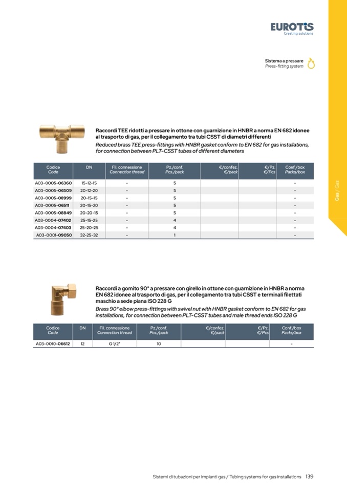 Sistemi di tubazioni per impianti gas / Tubing systems for gas installations