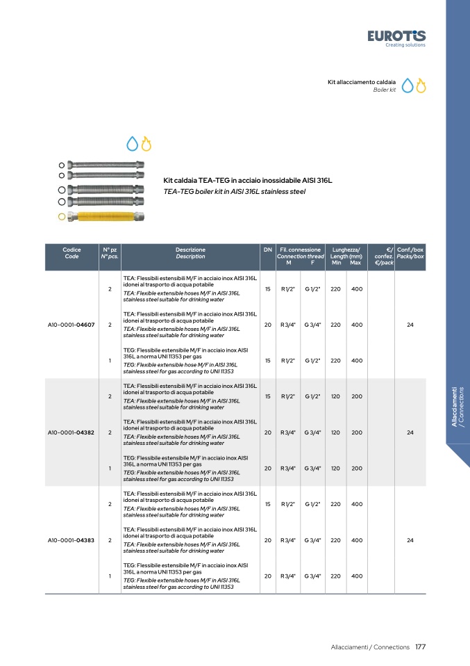 TEA: Flessibili estensibili M/F in acciaio inox AISI 316L
