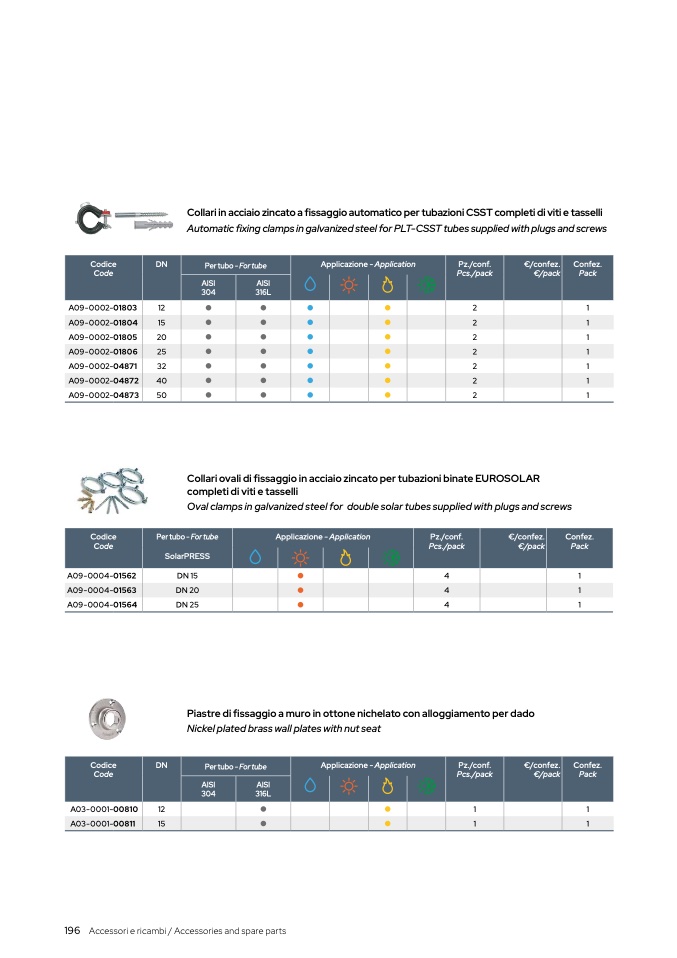 Collari ovali di fissaggio in acciaio zincato per tubazioni binate EUROSOLAR