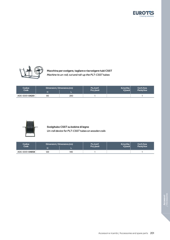 Machine to un-roll, cut and roll-up the PLT-CSST tubes