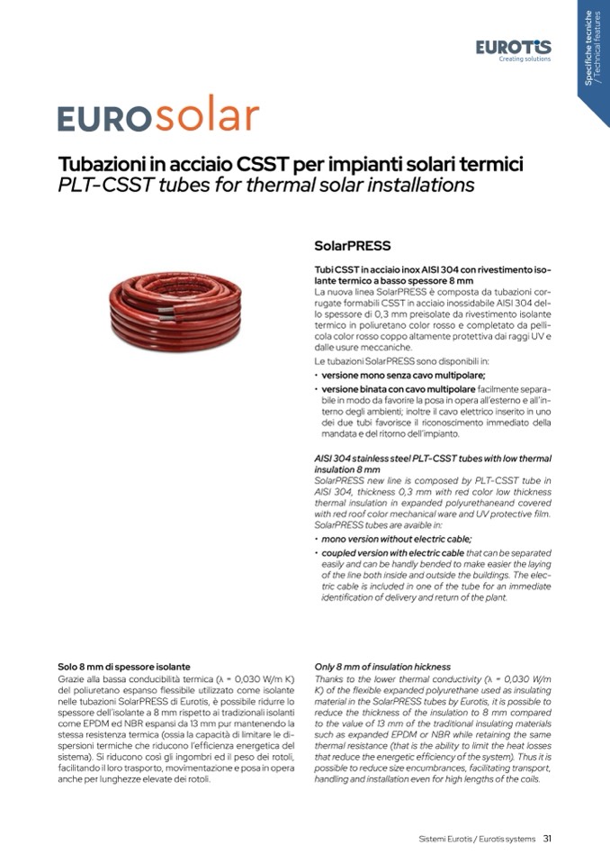 La nuova linea SolarPRESS è composta da tubazioni cor