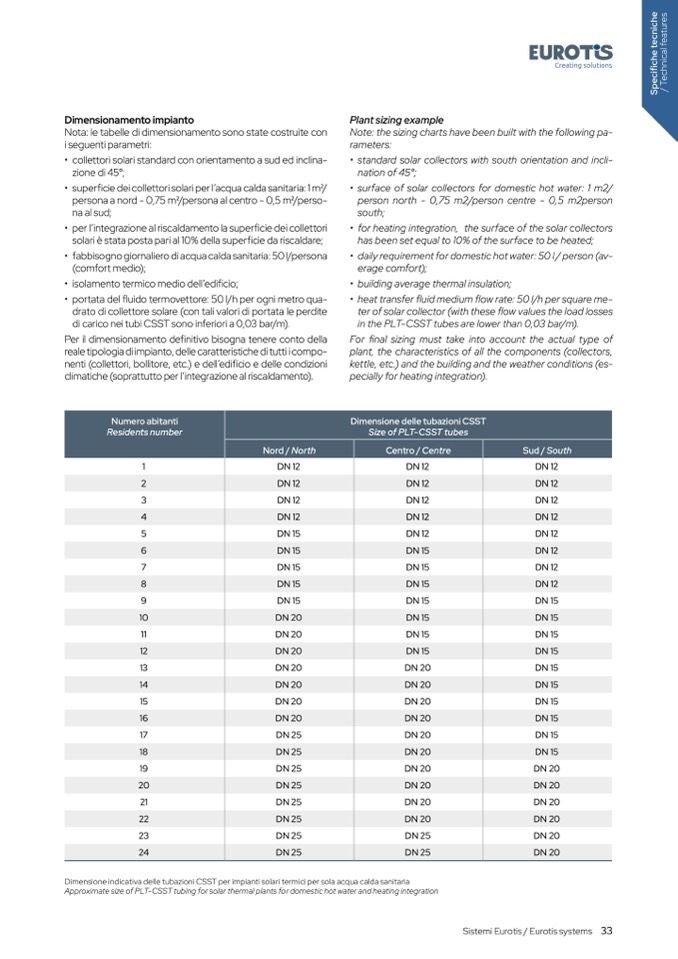 Approximate size of PLT-CSST tubing for solar thermal plants for domestic hot water and heating integratio