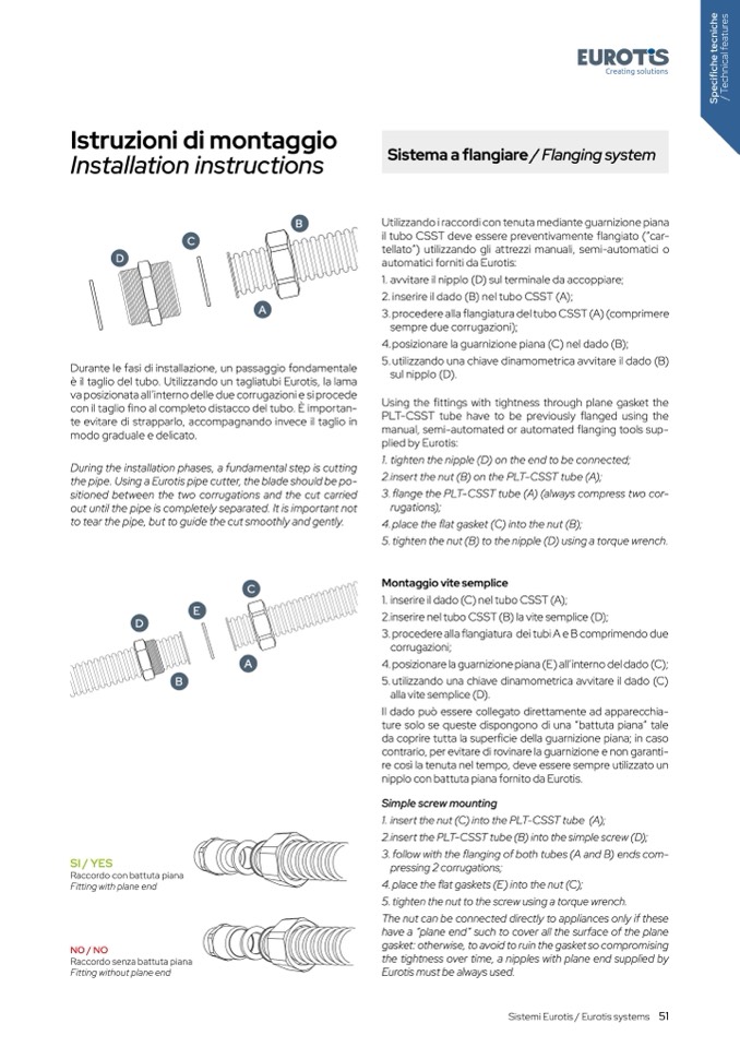 3. procedere alla flangiatura dei tubi A e B comprimendo due
