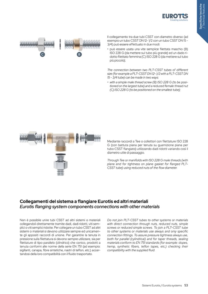plici o viti semplici ridotte. Per collegare un tubo CSST ad altri