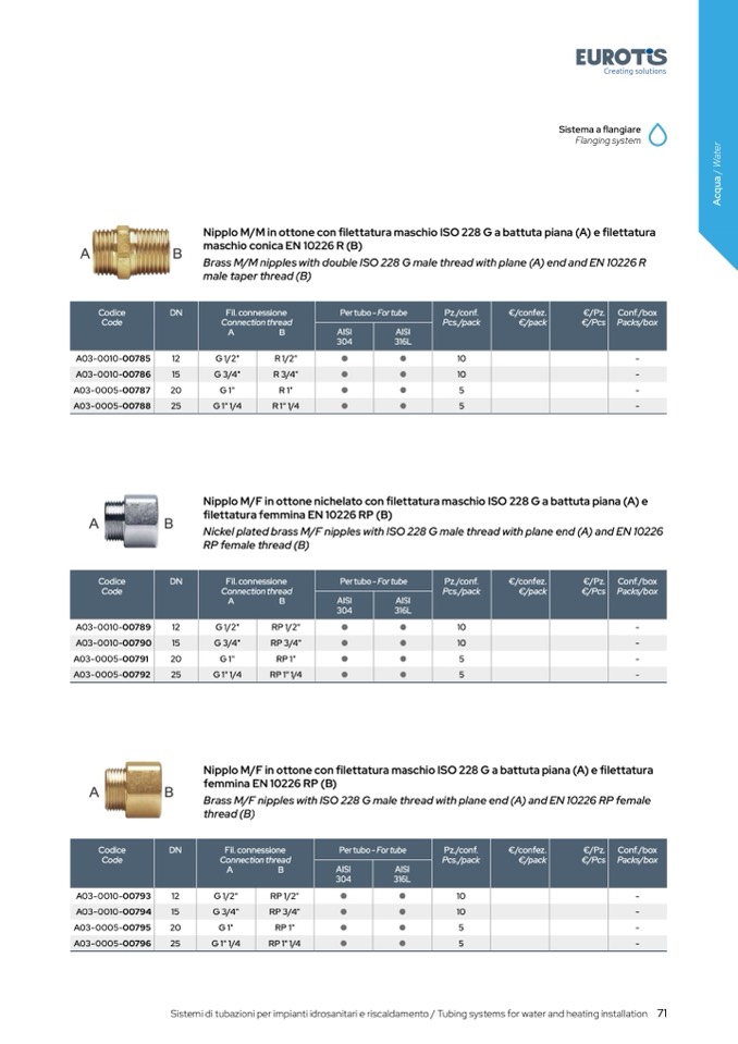 Sistemi di tubazioni per impianti idrosanitari e riscaldamento / Tubing systems for water and heating installation