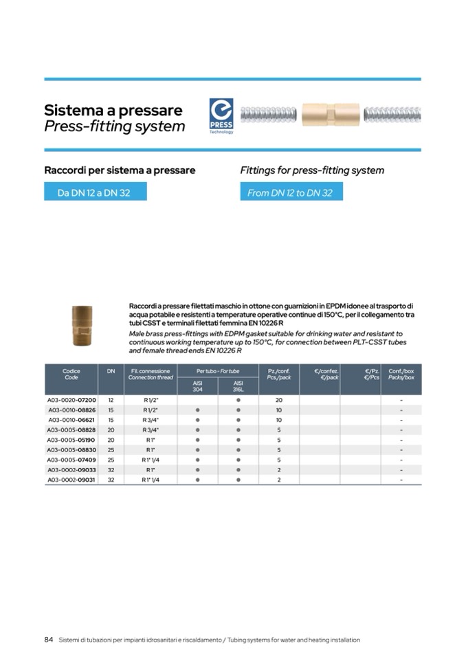 Sistemi di tubazioni per impianti idrosanitari e riscaldamento / Tubing systems for water and heating installation