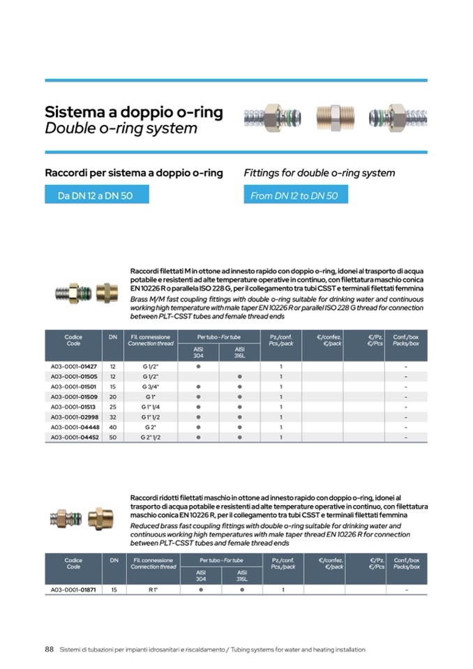 fittings with double o-ring suitable for drinking water and continuous