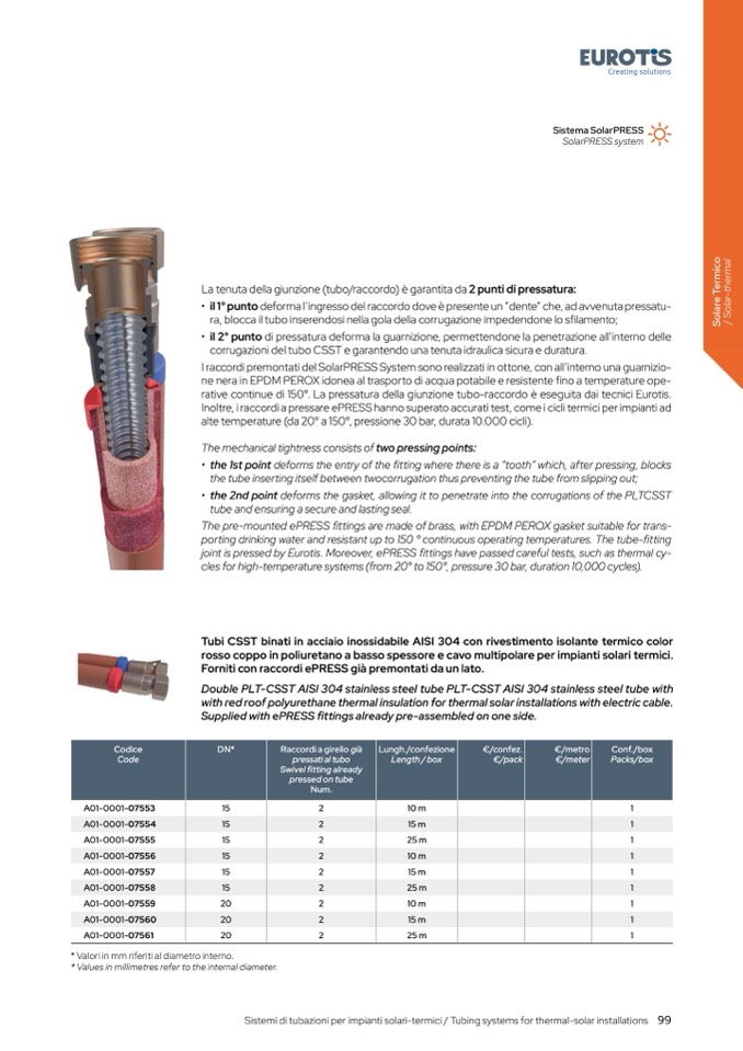 rative continue di 150°. La pressatura della giunzione tubo-raccordo è eseguita dai tecnici Eurotis.