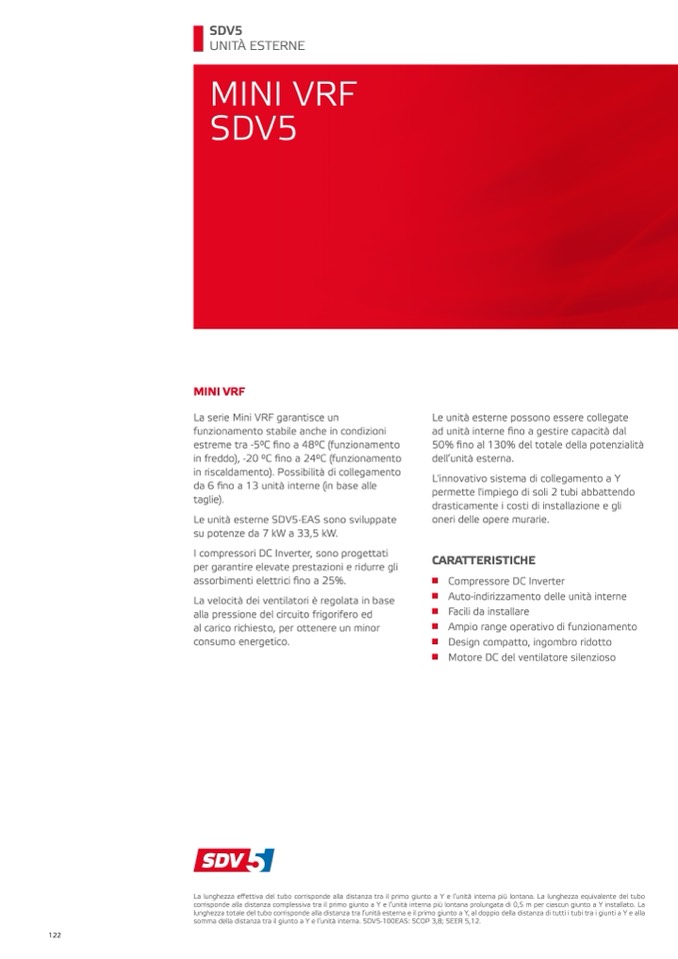 somma della distanza tra il giunto a Y e l’unità interna. SDV5-100EAS: SCOP 3,8; SEER 5,12.