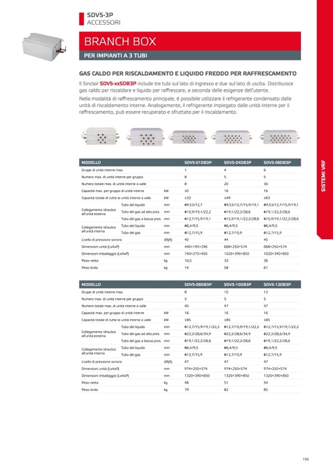 Il Sinclair SDV5-xxSDB3P include tre tubi sul lato di ingresso e due sul lato di uscita. Distribuisce