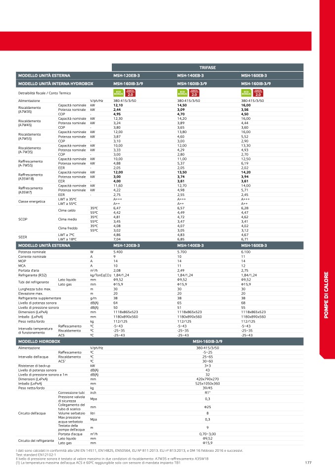 I dati sono calcolati in conformità alla UNI EN 14511, EN14825, EN50564, EU N° 811:2013. EU n° 813:2013, e DM 16 febbraio 2016 e successivi.