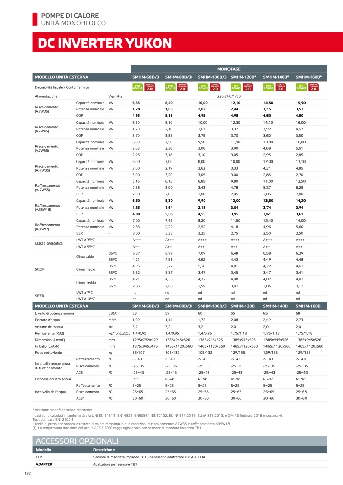 I dati sono calcolati in conformità alla UNI EN 14511, EN14825, EN50564, EN12102, EU N° 811:2013. EU n° 813:2013, e DM 16 febbraio 2016 e successivi.