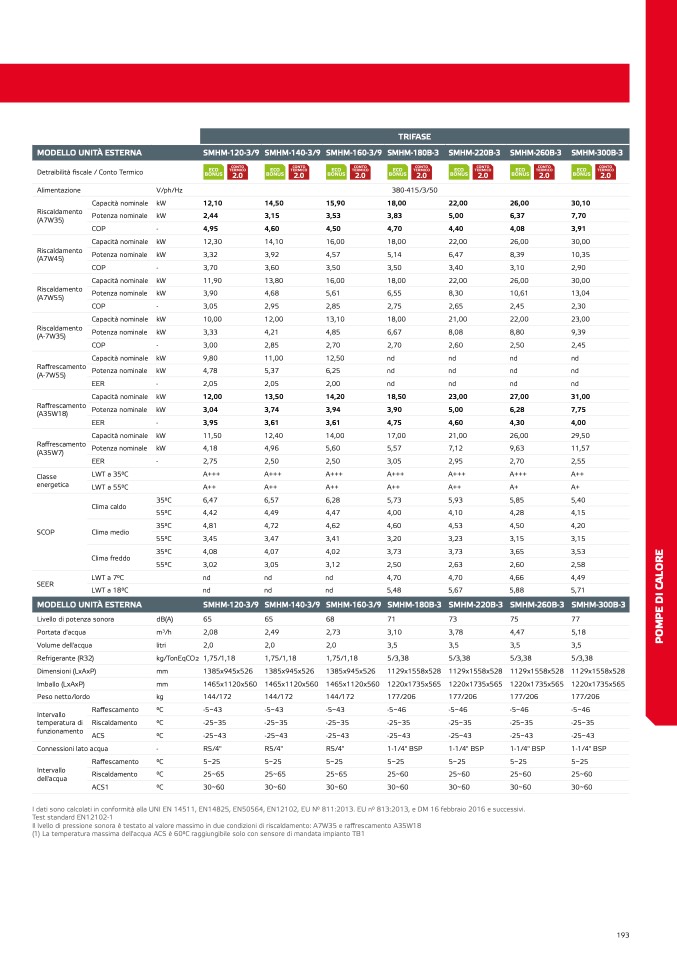 I dati sono calcolati in conformità alla UNI EN 14511, EN14825, EN50564, EN12102, EU N° 811:2013. EU n° 813:2013, e DM 16 febbraio 2016 e successivi.