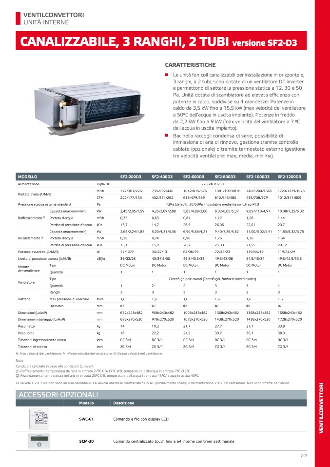3 ranghi, a 2 tubi, sono dotate di un ventilatore DC inverter