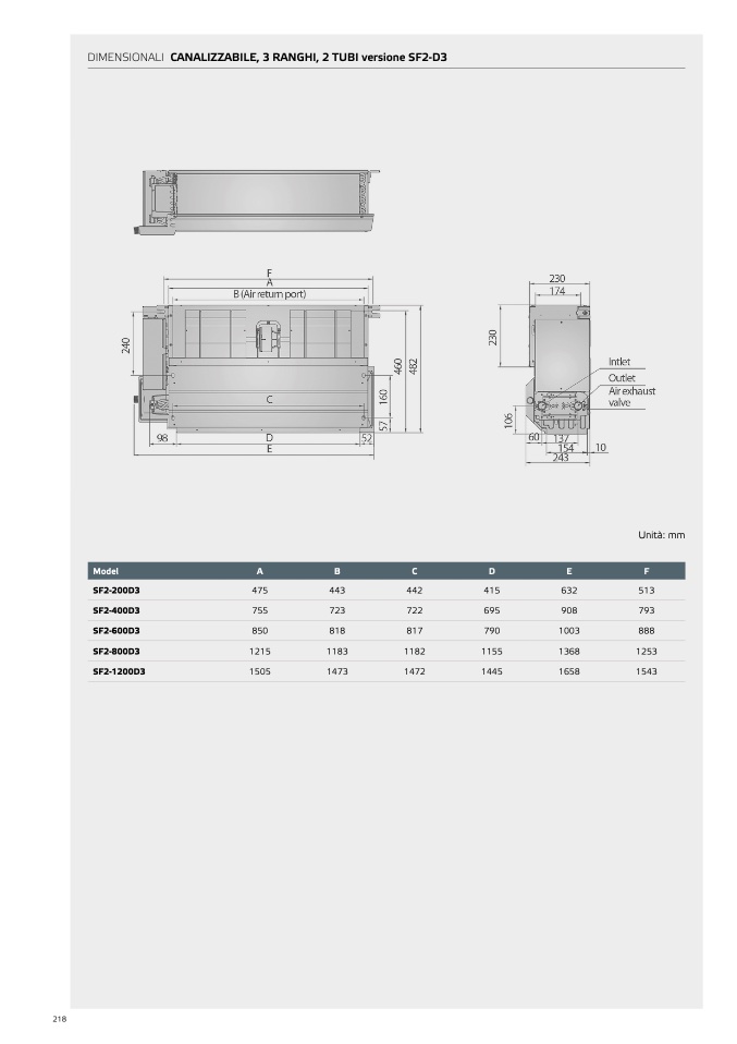 DIMENSIONALI CANALIZZABILE, 3 RANGHI, 2 TUBI versione SF2-D3