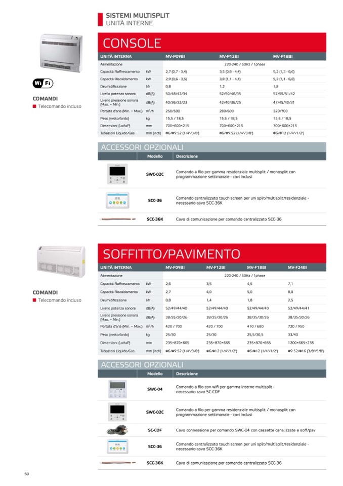 Comando a filo con wifi per gamma interne multisplit -