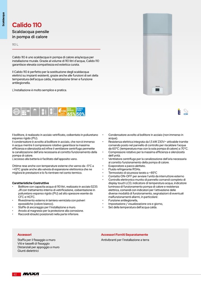 installazione murale. Grazie al volume di 110 litri d’acqua, Calido 110